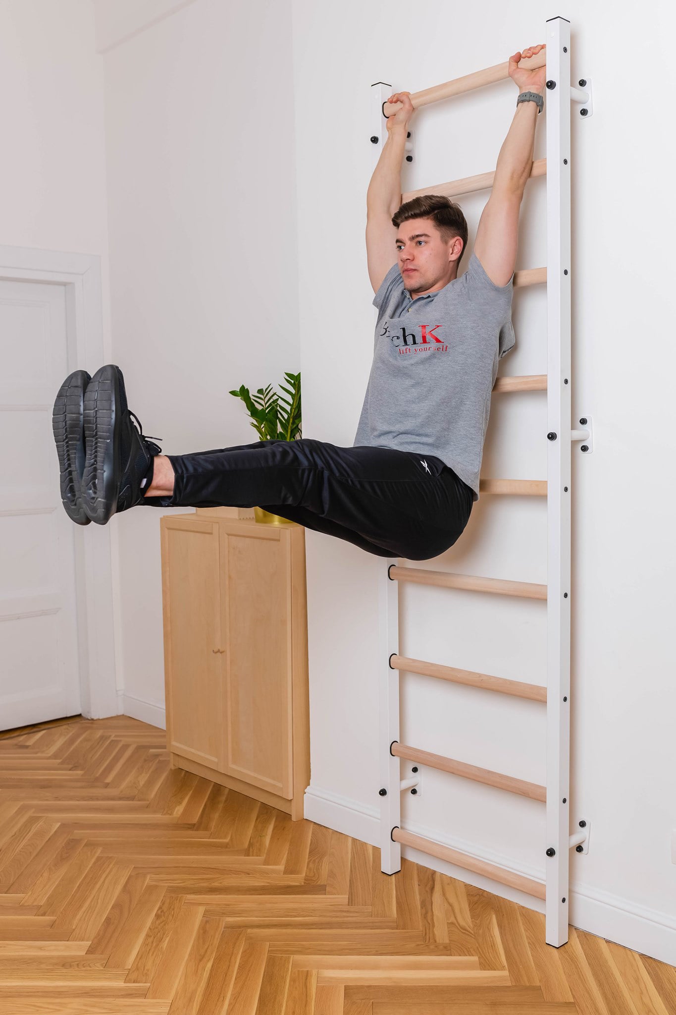 BenchK wall bars provide a full bodyweight workout with a wide range of exercise options - spine flexion and extension, joint mobility, strength training, core conditioning, stretching, handstands, cardio, straps, and many more.