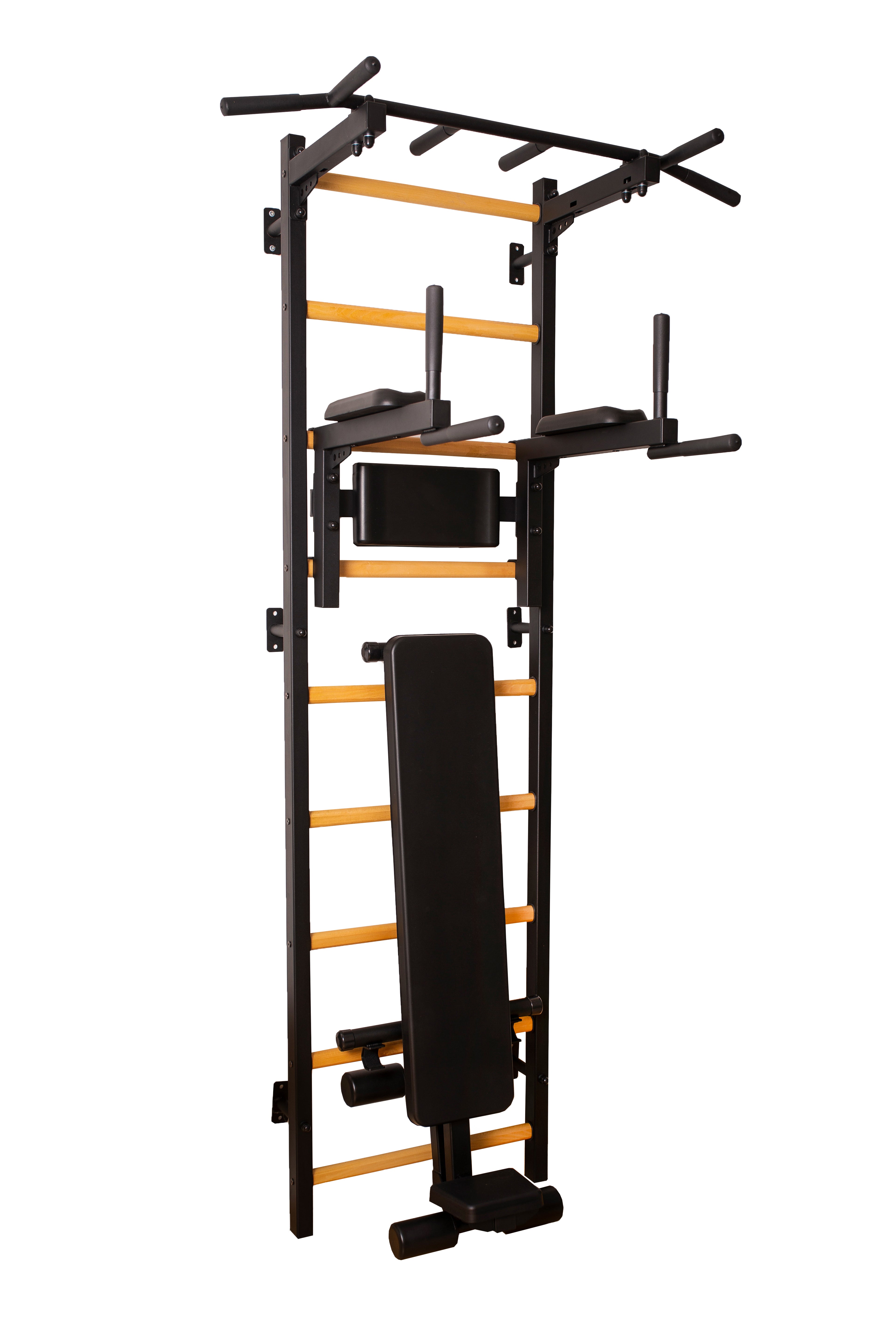 BenchK 723 Swedish Ladder with Pull-Up Bar, Dip Bar and Workout Bench
